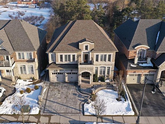 Luxurious Ravine Home in Prestigious Estate of Credit Ridge With Walkout+ Sep. Entrance. Approx 4000 sq ft. per MPAC Office/Library on Main flr. Smooth Ceilings + Upgraded Oak Hdwd Throughout! Travertine floors in Kit, Hallway + Foyer. New Top of Line S/S Appliances. 52' marbel+stone stove canopy. Custom stone craftsmanship double sided gas Napoleon fireplace in Liv + Fam Rm. 17' Ceilings + Open to Above Fam rm. Interlocking stone driveway + walkways. Large Bedrooms w Semi Ensuites. 170k Premium Walk out Lot!! Over 250k in upgrade!! two garage door openers plus outside keypad. RENTAL: AC, Tank-less Vent Water Heater, and Hepa Filter.
