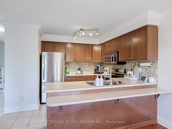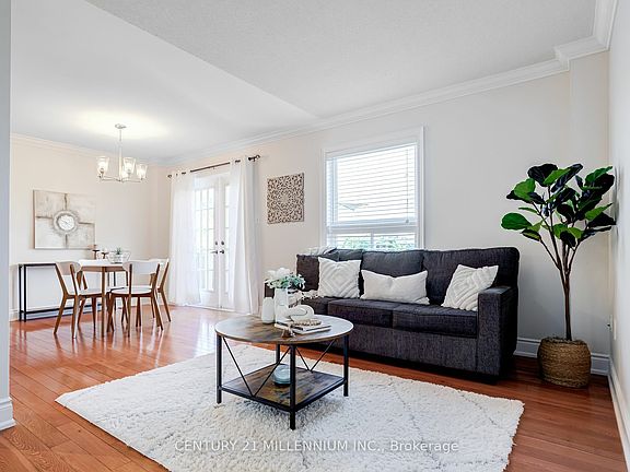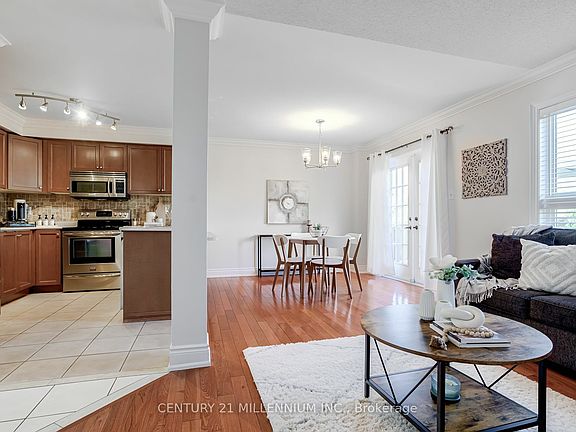 Gorgeous fully detached brick, two-storey home with separate side door entrance to a one bedroom, open concept in law suite (sellers and listing agents do not warrant retrofit status). Modern open concept main level with wide foyer/hallway with neutral ceramic tiled flooring throughout, freshly painted in a neutral palette, spacious living and dining room combination with garden French door w/o to a three tired composite deck. Modern kitchen with breakfast bar, neutral ceramic tiled flooring, ample maple cabinetry, tumbled stone back splash, double sinks with upgraded brushed nickle faucet, track lighting, crown moulding and stainless steel appliances. Upgraded powder room with white vanity/molded sink/crown moulding. Upgraded staircase with white spindles lead to the upper level with three spacious bedrooms/laminate flooring, crown moulding, large windows, W/I closet in primary bedroom, semi-ensuite bathroom. Professionally finished lower level three piece bathroom. Ideal location baking onto a private ravine/pond. Many upgrades. garage door, roof, central-air, high efficiency furnace, central vacuum.