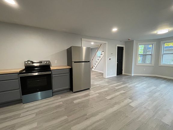 Welcome! New, fully renovated multi-level 3 bedroom apartment offers a spacious front entry, and modern amenities such as oven, refrigerator, washer, and dryer. Enjoy the convenience of onsite/street parking, and on-site laundry. With a beautiful front porch view. Front and side yard with patio and walk out slider from master bedroom. Unit also offers a brand new heating system. Large kitchen/dining room with beautiful butcher block counter tops and brand new cabinets. Utilities that are included, water and sewer.