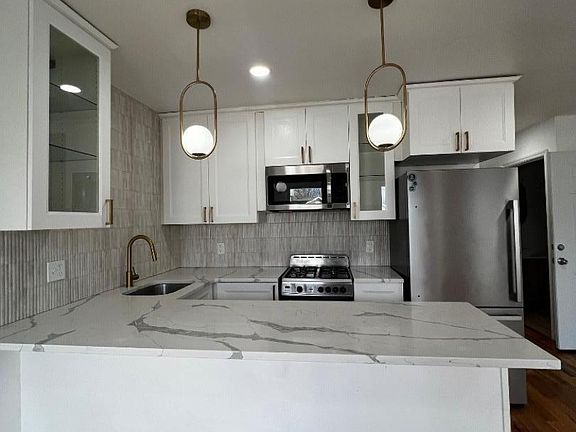 Discover this beautifully renovated 2-bedroom apartment with a small front porch and a back deck, ideally situated for convenience and comfort! Located near major highways and public transportation, commuting has never been easier. This move-in-ready home features comfortable bedrooms, an updated bathroom, and a modern kitchen. Plus, enjoy the convenience of in-unit laundry. Street parking.