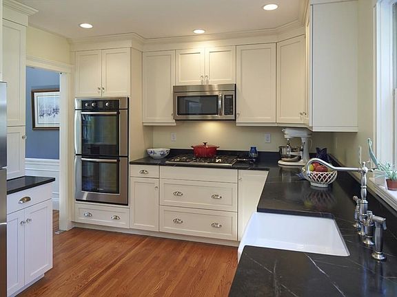 Wonderful sun-filled 1928 Colonial with nine rooms of living space. Ideally located between Cushing Square and Belmont Center, this home has much to offer. A custom kitchen with high end Bosch double ovens, gas cooktop, farmhouse sink and soapstone countertops was completed in 2011 along with additional full ceramic tiled bathroom. The front to back living room with fireplace opens to a spacious sun room through French doors and is ideal for entertaining. An elegant, formal dining room has wainscoting, original moldings and French doors. The second floor offers four bedrooms, a full bathroom, and a study off the master bedroom. Additional features include hardwood floors, a walk-up attic, level back yard, and a two-car garage. Close proximity to all three levels of public schools, shops, restaurants and public transportation.