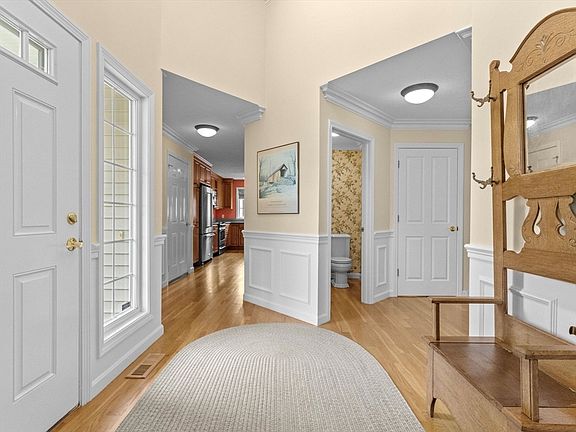 Bright & Sunny is the best way to describe this original owner duplex condominium. From the abundance of sunshine to the soaring ceilings, this 2 bed/2.5 bath end unit with a 2 car attached garage is sure to impress you with it's spacious open floor plan including a gas fireplaced living room, a combined formal dining room, vaulted ceilings, built-in cabinetry, lots of hardwood floors, and a 3 season sunroom overlooking the private wooded backyard. The updated stainless steel applianced kitchen boasts a center island, granite countertops, a separate dining area, and a hosting center complete w/ a wet bar & wine storage. The cozy & welcoming 1st floor den or office has a bay window w/ custom built-in bookcases. The master/primary bedroom has loads of closet space, cathedral ceilings, & a full bathroom w/ solid countertops & dual sinks.A separate laundry room completes the 1st floor.The 2nd floor has a loft area w/eave storage, a large bedroom w/ walk-in closet, linen closet, & full bath