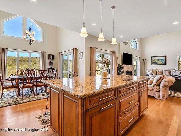 Charming 3-Bedroom, 2-Bath Home in Catskill, NY - Stunning Creek & Mountain Views & Massive 5 Car Garage on 10.6 Acres. This breathtaking house is nestled in the serene beauty of Catskill, NY, this pristine 3-bedroom, 2-bathroom home offers the perfect blend of modern comfort and natural tranquility. Overlooking the picturesque Kaaterskill Creek and has panoramic mountain views, this property provides a peaceful retreat, surrounded by nature's beauty. Step inside to discover an open and bright living space with stunning two-story windows that flood the home with natural light and provide scenic views from every room. The custom kitchen boasts sleek granite countertops, high-end cabinetry, and thoughtful upgrades throughout. The home also features beautiful hardwood floors that add warmth and elegance to the space.
