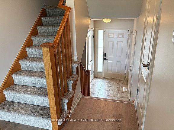 Immaculate updated 3 bedroom townhome. Eat-in kitchen, large living room, master bedroom with walk-in closet and 3-piece ensuite. 2nd floor laundry and finished lower level. Backing onto a pond for privacy. Single car garage with inside entry to home. Updated flooring (2022). On a quiet cul-de-sac. Condo has no exterior maintenance. Easy access to QEW for commuters.