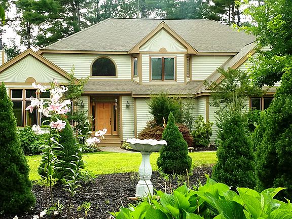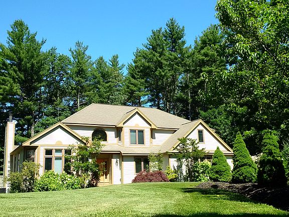 20 acres for the price of 1. Rare custom contemporary open-concept home in Richland Estates on cul-de-Sac overlooking more than 20acres of protected land and forest. (39 total acres in Richland reserve) Stunning new master bedroom ensuite with TWO separate his and her quartz countertops, along with two space saving vessel sinks, a new jetted Jacuzzi and custom tile work. 5 bedrooms in total, ALL with large walk-in closets. Endless storage. 14 closets in total throughout the home, and endless shelving everywhere. This gem of a home boasts a beautiful open 2-story greatroom bathed in sunlight with full southern exposure, a modern forced air fireplace, skylights, and a custom $4000 pellet stove included. The updated kitchen has granite counters, a large island, new stainless appliances (oven not yet installed) and even custom leather barstools. Guests are welcomed by a two-story grand foyer with an amazing new crystal chandelier and an open loft overlooking the foyer and living room. There is a sunroom (144sf not even included in SF of home) with massive picture windows overlooking the forest and green landscaping. This home has central AC & heating and a finished basement with 2 bedrooms, bath and 2nd laundry room. This amazing property has rich landscaping with a 16 zone irrigation system and deck overlooking the forest and conserved land. There are 3 oversized attached garages (all 3 garage doors are new), a new Rheems high efficiency tankless water heater (on-demand, never run out of hot water), fresh paint top to bottom and an invisible pet fence. Speaking of invisible, all utilities in Richland Estates are underground, so NO unsightly telephone poles or power lines. Even the elegant exterior lighting is on multiple motion sensors to welcome you home at night with warm white lighting. This sought-out Hollis neighborhood has great schools, and is centrally located: Logan 50mi, Manchester 20mi, Everett Trnpk 5mi, Silver Lake 4mi. A MUST SEE property, offered by a very motivated seller.