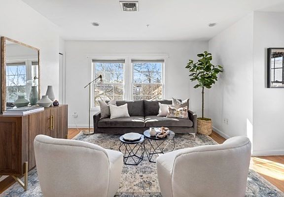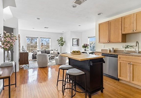 Enjoy comfort and convenience in this corner penthouse just down the street from Malden's scenic Bell Rock Park. A generous entryway opens on the sunny and inviting main living level with oversized windows. Practical kitchen with a new dishwasher and pantry found on this floor, as well as a half-bathroom and ample space for living and dining areas. Upstairs provides a private retreat with two bedrooms separated by a hallway with access to laundry and a full bathroom with an oversized tub. Comfortable primary bedroom with a closet and park view. Plentiful closet space throughout, as well as additional private storage space in the basement. Newer heating system and central AC. Two deeded parking spots. Located just minutes from multiple bus stops and Wellington and Malden Center stations. Easy access to I-93, as well as burgeoning downtown Malden's dining and shops. Home sweet home.