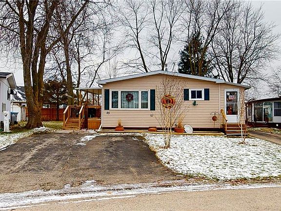 Welcome to Riverview Estates located in Exeter's north end which is conveniently located close to shopping, eating establishments and walking trails. This adult oriented community includes a beautiful rec hall, fitness room, shuffleboard, horse shoe pits and more. This 960 sq ft home has all the work done and is move-in ready! Inside are 2 bedrooms, an updated 5pc bath, kitchen with updated cabinets and appliances, a den, laundry area, enclosed front porch and lots of storage. Outside is a newer partially covered deck to relax or entertain on, newer roof shingles and storage shed- all 2 years old. The living room windows, furnace, central air, side exterior doors and washer/dryer were all updated 3 years ago. The flooring, window coverings and decor have all been recently updated also. Now is the time to make this well cared for home yours and enjoy all that Riverview Estates has to offer. All measurements are approx. Combined monthly total of land lease and estimated taxes to the new owner is $480.49.