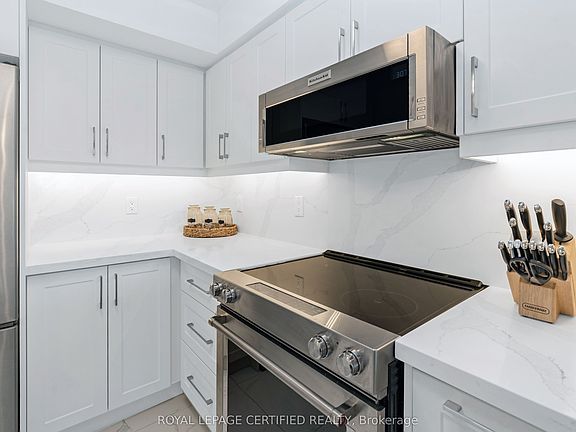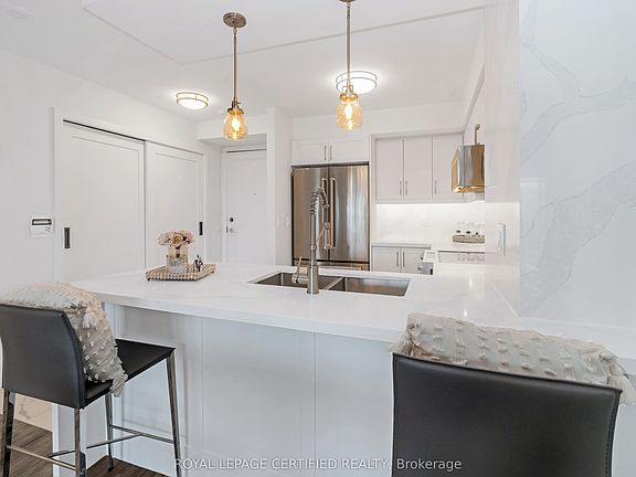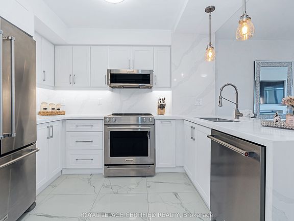 Modern kitchenPorcelain countertops and backsplashStainless steel appliancesBright primary bedroomRenovated bathroomIn-suite laundry