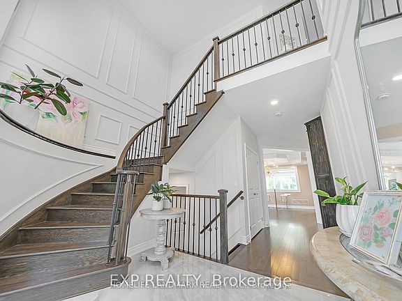 DON'T MISS THIS INCREDIBLE OPPORTUNITY TO OWN A LUXURY HOME IN A PRIME LOCATION! Nestled on a rare premium ravine lot with only one neighbor and a park next door, this stunning 4+1 bedroom, 4-bathroom executive residence offers the perfect blend of luxury, privacy, and versatility in the heart of Sharon Village. Step inside to find smooth ceilings throughout, soaring 9' ceilings on both main & second floors, crown moulding, wainscoting walls, hardwood floors, and pot lights illuminating the living room, family room, and kitchen. Designer lighting fixtures and zebra blinds enhance the upscale ambiance. The gourmet kitchen features stainless steel appliances (2018), a powerful 800 CFM range hood (2022), gas stove, subway tile backsplash, and opens to serene ravine views. The professionally finished basement offers a separate side entrance, full kitchen, laundry, and private bedroom - perfect for extended family or rental income potential. Exterior upgrades include: interlocking driveway, sidewalk & backyard, composite deck with glass railing, professional landscaping, garage door opener, and a fully fenced backyard. Comfort upgrades: newer central A/C, air filtration system, and water softener. THIS HOME COMBINES LUXURY WITH CONVENIENCE, LOCATED MINUTES FROM SHOPPING CENTERS, CONSERVATION AREAS, AND EASY HIGHWAY 404 ACCESS FOR A QUICK COMMUTE. WITH ITS FANTASTIC LOCATION, EXCEPTIONAL UPGRADES, AND SPACIOUS LAYOUT, THIS IS THE ONE YOU'VE BEEN WAITING FOR!