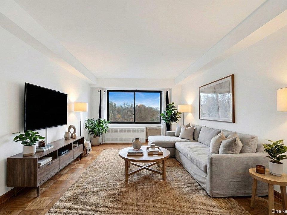 Enjoy downtown living in this 2-bedroom, 1-bath, 1,000 sq. ft. co-op unit featuring large windows, panoramic north- and east-facing city views, and abundant morning and late-afternoon sunlight. Beautiful seasonal scenery in spring, summer, and fall, all visible from the comfort of your home. The spacious living/dining area, two versatile bedrooms, and well-appointed kitchen make this residence comfortable and move-in ready. Building access is simple and secure with a phone app that allows entry from anywhere. Located in the heart of downtown White Plains, the home offers close proximity to restaurants, cafes, boutiques, City Center entertainment, The Westchester Mall, fitness studios, and the local arts scene. Commuters benefit from convenient access to both White Plains and North White Plains Metro-North stations. The J Harvey Turnure Memorial park, across from Regency Park, offers a playground and peaceful outdoor getaway. In short, a rare combination of sunlight, views, convenience, and vibrant urban-suburban living—near NYC!