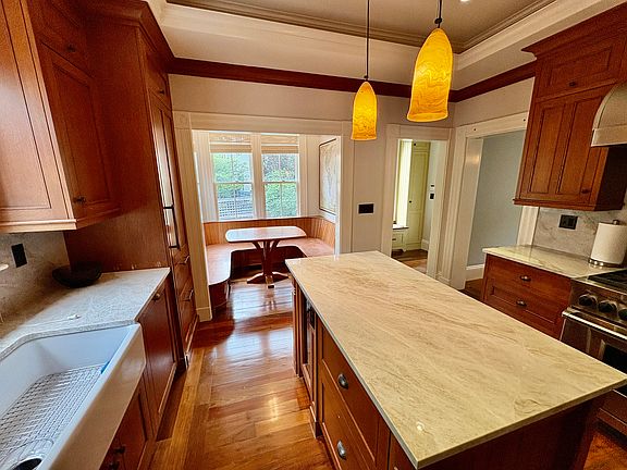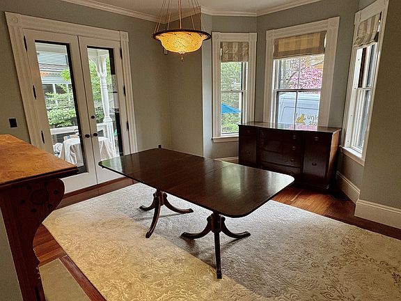 Located on a gentle slope in Avon Hill, this recently updated Victorian is available FURNISHED from Mid August - June of 2026. The main floor has a formal living room, separate dining room, EIK with banquette seating, private study and half bath. The second level has the primary suite with a luxurious 4 piece bath and private deck. There is an additional bedroom with new bath on suite on this level too. The top floor family bedrooms are bright with skylights and share a bath with large walk in shower. The newly renovated contemporary lower level is a huge bonus space with private entrance. Enjoy movie night and pop some popcorn in the apartment size kitchen. There is a stone patio area for dining Al fresco, a classic New England mudroom and 2 vehicle parking as well. The Furniture is just beginning to be moved back into the home after newly sanded floors and fresh paint throughout! Its a fine piece of work in process! More furnished photos coming soon! Tenant pays for all utilities, snow removal