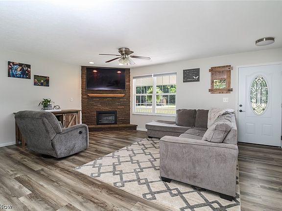 This beautiful, spacious home offers four bedrooms and three bathrooms with a attached two car garage. Nestled on over an acre of land just a few minutes away from Warren Local Schools. As you step inside you will notice an open concept with the focal point being a stone fireplace in the living room. A large eat in kitchen with a sizable island and quartz countertops and patio doors leading you out onto the deck overlooking the backyard. The main level offers three bedrooms including the master’s suite with a full bathroom. Downstairs in the walkout basement you will find a large rec room/ living room, half bath, bedroom/ office space, laundry and large storage area that can easily be finished. This home has had many updates including floors, doors, roof, quartz countertops, kitchen island, hot water tank, furnace, concrete driveway and more! Call for your showing today!