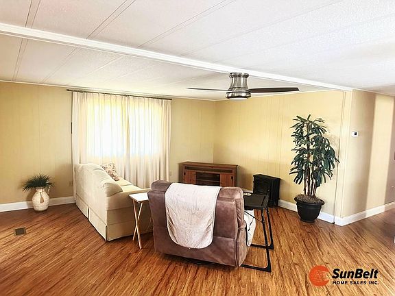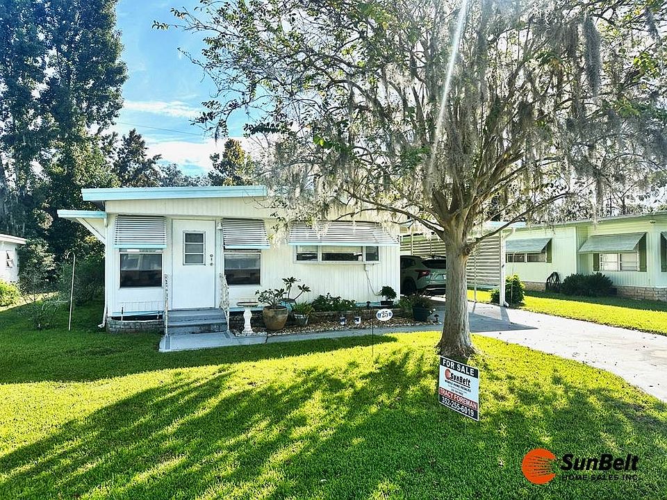 Welcome to this 2 bedroom 2 bathroom home located in a 55+ leased land community. This well-kept manufactured home offers comfort, convenience, and plenty of space. The open and expansive kitchen is perfect for everyday living or entertaining, with room for dining and easy flow into the living areas, complete with laminate flooring for a modern touch and easy care. The oversized master bedroom provides a relaxing retreat and has an attached full bath. A second bedroom and bath offer flexibility for guests or hobbies. Outside, you'll find a large shed-ideal for storage, a workshop, or extra space for your projects. This home combines functionality with style and sits in a desirable Eustis location, close to shopping, dining, and Central Florida's natural beauty.