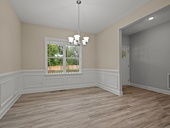 USDA Eligible! Fantastic Lender Concessions Available! This custom-built ranch plan offers thoughtful design and high-end finishes throughout. Enjoy luxury hardwood-style flooring in the main living areas and granite countertops throughout. The kitchen boasts custom-painted cabinetry, a large center island with pendant lighting, brushed nickel fixtures, stainless steel appliances (including a smooth-top range, built-in microwave, and dishwasher), and a walk-in pantry with custom wood shelving. The owner's suite features plush carpeting, a walk-in closet with direct access to the laundry room, and a spa-like bath with tile flooring, dual granite vanities, and a walk-in shower. The open family room includes a vaulted ceiling and sliding doors leading to a covered rear porch—perfect for outdoor relaxation. A bright dining room with a double window and a spacious laundry room complete this exceptional home!