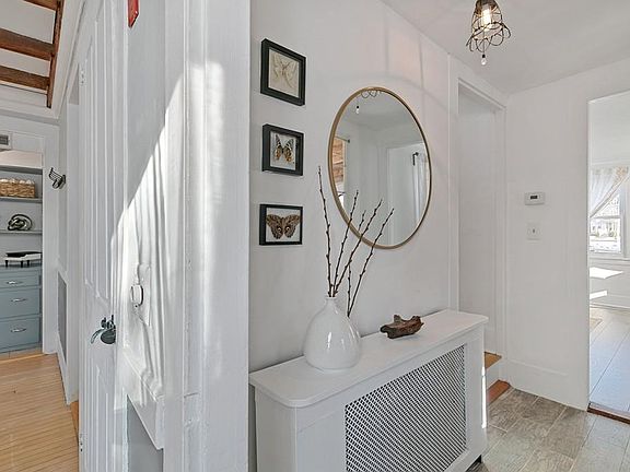 Single family home for under $350k with a beautiful backyard and deck to enjoy during the summer months, making this a hugely desirable property! Upon entrance into this wonderfully maintained antique colonial home, you'll walk into an enclosed porch that serves perfectly as a large mudroom. Step through the front door, into the foyer and you'll be greeted with a warm and inviting dining room, gleaming hardwood floors and a wood burning fireplace. The living room offers ample space to entertain, while the large kitchen offers plenty of space to cook with its' adorable breakfast bar area and bay window overlooking the private back yard. Central AC and plenty of storage in the basement! You'll find many updates throughout to include new laminate floors, freshly painted walls, new carpets throughout the second floor and a newer stainless steel refrigerator! Nothing to do, but move in and make this home your own!