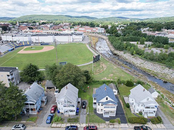 Move right in to this centrally located 2 family on a quiet side street, perfect for an owner occupant! Great location with river views and the property abuts Torrington's baseball field in the rear! The 2nd & 3rd floor townhouse style apartment is move in ready with fresh paint and new carpeting installed. Fully applianced eat in kitchen, tile flooring in the kitchen and full bathroom. Both floors have a sweet front porch, separate utilities and basement laundry hook ups. Long term tenant on the first floor has been living there for 20+ years. Move in and start collecting rent! Level yard with plenty of parking and a detached 1 car garage. Roof replaced approximately 3 years ago.