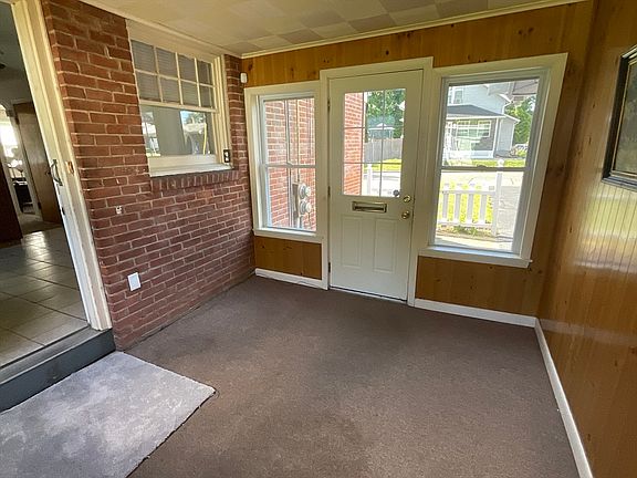 Cute brick cape in the heart of Pine Point. There is a brand new roof and new compressor for central AC. An attached breezeway connecting the garage and the kitchen keeps you out of any weather. You will find a brand new stove in that kitchen. The dining and living rooms are at the front of the house looking out at the large front yard. A bedroom with a washer/dryer combo in one of the closets and a 3/4 bathroom finish out the first floor. There is also laundry area in the basement. The second floor has 2 spacious bedrooms, including the main bedroom and a full bathroom. Brand new wall to wall carpet throughout with hardwood floors under all carpets, except the 1st floor hall. The grassy yard is mostly fenced in and ready for you to make memories with family and friends. Audio and video surveillance on property. Don’t miss out on this great home! Schedule your showing today! Gas main in road at front of the house.