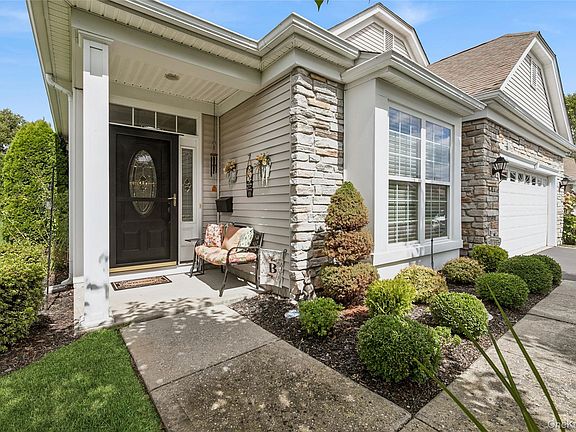 Welcome to easy living in this beautifully maintained, one floor ranch style detached home (Claremont model) in a sought after 55-and-older community. This inviting home features a bright spacious layout with a formal dining room, formal living room, den/great room and a well appointed eat-in kitchen featuring center island, granite and stainless appliances. The primary suite includes a private bath with two separate vanities, shower, soaker tub and water closet for the toilet. Also included is a large walk-in closet for all your personal belongings. A second bedroom and full bathroom are perfect for guests or office. Enjoy the convenience and security of a two-car garage and the peace of mind of low maintenance living in a double gated community. Your amenities include both indoor and outdoor pool, indoor hot tub, club house, tennis courts, bocce courts, putting green and more.