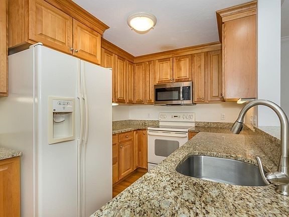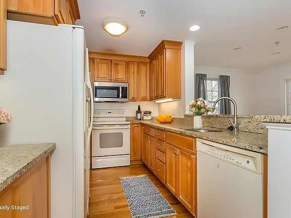 Prime downtown Canton Center location! This charming 2-3 bedroom, 2.5 bath townhouse in Grover Estates offers a bright, open floor plan. The kitchen features granite countertops, while the living and dining areas seamlessly flow together with hardwood floors, a cozy gas fireplace, and access to a private balcony. The main level also includes a spacious primary suite with a dual vanity bath and walk-in closet, as well as a convenient half bath and laundry closet. The lower level offers flexible space, perfect for a den, office, or 3rd bedroom, plus a full bath and additional walk-in closet. Additional amenities include central air, private laundry, basement storage, and an attached garage. Ideally located just moments from the library, town hall, train to Boston, and the shops along Washington Street. This townhouse offers the privacy and feel of a single-family home!