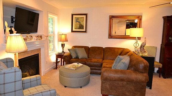 Luxurious Living with spacious, sun drenched rooms, fireside entertaining and a private deck!Impressive details include tray ceilings, custom cabinets, tile flooring and large closets! This home is a must see! FIRST FLOOR- Kitchen (10x10) has tiled floors, quality appliances and custom cabinets. The living room (19x13) is perfect for entertaining with a gas fireplace, views of the mountains and room for a large tv. The dining area (10x9) has a tray ceiling and lots of light leading to a private deck. 3 large bedrooms and two full baths.