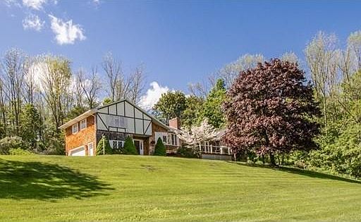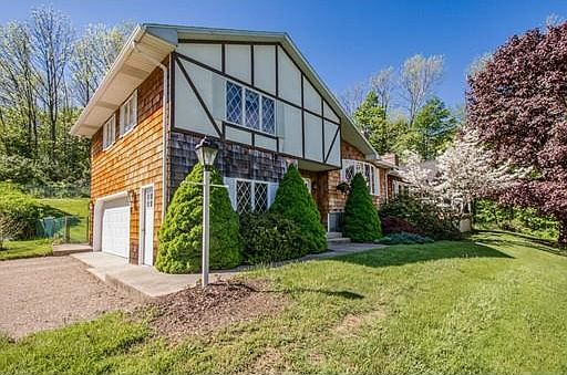 SLOW DOWN to appreciate the spectacular panoramic facade of this tudor styled extended multi level. Truely a custom home with great quality details that keep on going. From the newly tiled two story Foyer to the newly finished hardwood floors in the fireplaced Living Room with huge bow window to the striking remodeled eat-in Kitchen with granite countertops and hardwoods with classic inlay. Step down into the huge cathedral skylit addition with Dining Room and fireplaced Family Room with hardwoods and multiple atrium doors to the front deck. Also in the addition, Master Bedroom with double closets, full whirlpool Bath and convenient rear Mud Room with storage. Upper level has two Bedrooms with hardwoods and full tiled Bath. Lower Level heated fireplaced additional room with workbench, ready to finish! Newly bedded and paved driveway, shed and fenced back yard. Must see!