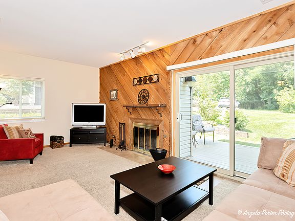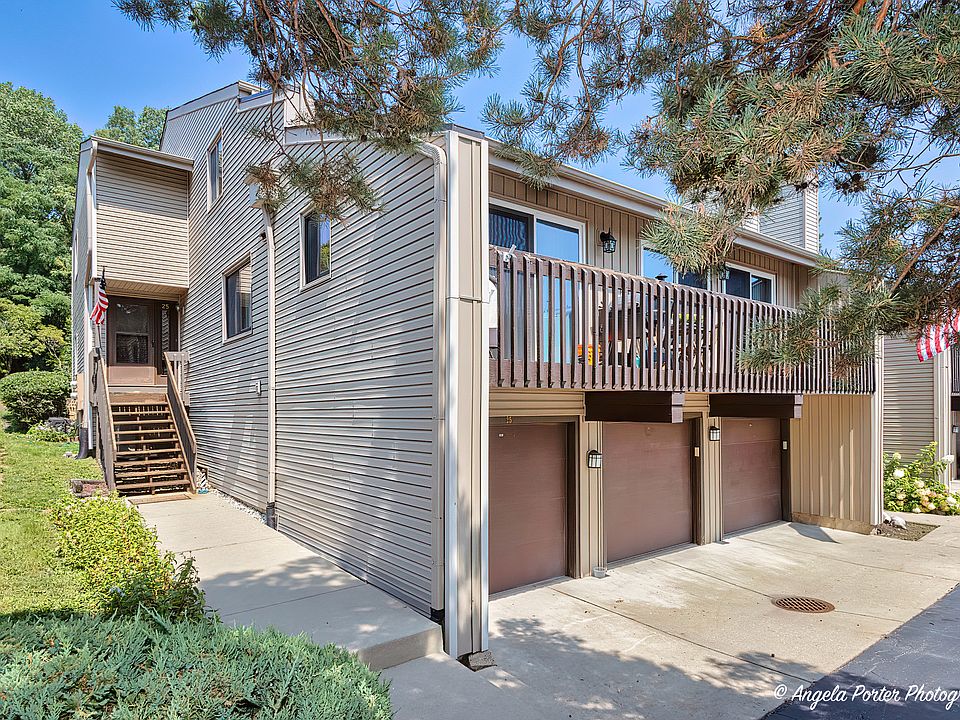 Spacious sunny 3-bedroom, 2.5-bathroom end unit with private entrance is perfect for weekend getaways or year-round living. Plenty of room for family and friends. The sunken living room features a wood-burning fireplace for cozy winter days. The living room is open to the dining area and kitchen, with newer appliances and countertops. Exit the sliding doors to enjoy the tranquility of a private wood deck that offers relaxing views of a wooded area and wildlife. For added relaxation, the large primary bedroom features a private deck, an ideal spot to unwind. The primary also has an en-suite bathroom and walk-in closet. The bathrooms have undergone recent remodeling, ensuring a modern and refreshed feel. Convenient second-floor laundry. Parking is made convenient with two dedicated parking spaces, including a one-car garage, providing both a storage room and shelter for your vehicle. The unit is freshly painted and has a newer air conditioner as well. The complex's prime location on Mineola Bay grants you direct access to the Chain-O-Lakes, perfect for water enthusiasts. This pet-friendly community offers an array of amenities, including a heated pool, a clubhouse, a beach area, boat launch and a park. Additionally, the possibility of a boat slip and boat storage adds to the appeal for boat owners. This end unit offers not only ample space but also a combination of modern upgrades and natural beauty in a desirable location. Walking distance to downtown Fox Lake, Metra station, movie theater and the new lakefront park.
