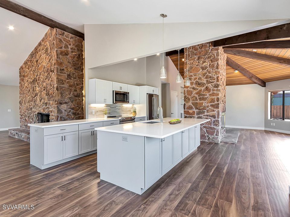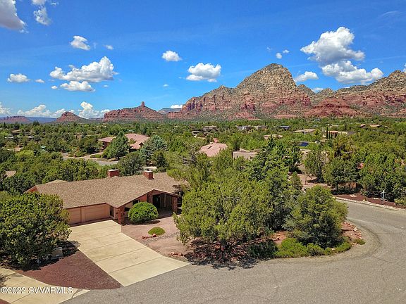 Ideal West Sedona location on a quiet cul-de-sac in coveted San Patricio Estates for this marvelous, elegant home. A newly updated, contemporary gem. Kitchen & bathroom remodel dazzles with exquisite quartz countertops & upscale finishes - a perfect complement to the striking architectural features throughout the home. The 2 ensuite bedrooms are generously sized as is the 2+ car garage with room for toys & walls of storage. Features lovely landscaping, mature trees, a Trex deck, & a charming gazebo with views of Thunder Mountain. All designed for gracious outdoor entertaining & relaxation. This location provides a rare combination of serenity & easy access to entertainment, trailheads, dining, & shopping. Whole Foods a mere 3 blocks away. Ideal & flexible as a primary &/or Vacation Home