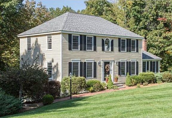 Welcome Home to Mockingbird Hill! Lovely, Hip Roof Colonial on 2.2 acres. Three Bedrooms and Two Car under garage. Gracious, two story foyer and hardwood on both levels. Newer granite and island in the eat-in Kitchen. Formal Dining Room with wainscoting. Cathedral ceiling in fire-placed, Family Room with doors leading to the deck. Perfect spot to watch the Patriots win the Super Bowl. Deck leads you to a charming and private patio area to pause and reflect. First floor Laundry and pantry. Extra room on second level for office, den or storage. Newer roof, water heater, furnace and exterior painting. Wired for generator - yes, it will be Winter soon! Expansive front lawn that is just waiting for a game of croquet..close to all area amenities and desirable commuting location. Be in your new home for the holidays.