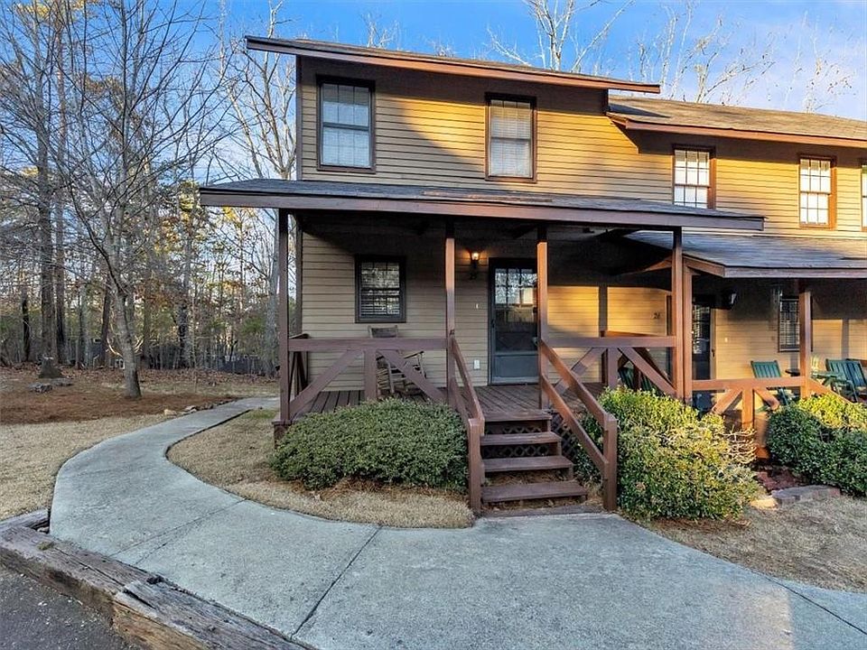 Welcome to beautiful Lake Arrowhead! This completely remodeled 2 bedroom, 2.5 bath end unit condo is in immaculate condition! The property features a spacious covered front porch that leads into the home. On the main floor, an open concept design is complemented by new hardwood flooring, fresh paint, a newly renovated kitchen with granite countertops, subway tile backsplash, soft-close cabinets, updated lighting fixtures, and new appliances including a refrigerator, stove and microwave. The eating peninsula provides additional counter and dining space. A hidden laundry closet includes a new washer and dryer which remain with the home. As this is an end unit, it features cozy wood-burning fireplace with an authentic chimney. The recently screened back deck offers peace, tranquility, and privacy. Upstairs, both bedrooms have double closets and their own full bathrooms. The upper floor has new hardwood flooring, while the bathrooms are finished with ceramic tiles. Bathroom updates encompass custom tile showers and bath, vanities with granite countertops, toilets, lighting, and fixtures. The HVAC system is only two years old. The community offers a variety of amenities including boating, fishing, golfing, hiking, tennis, pickleball, basketball, volleyball, swimming, fitness classes, and more. With this condo’s beautifully updated interior and extensive community amenities, it offers more than just a home – it offers a lifestyle. Do not miss the opportunity to make this exceptional property yours.