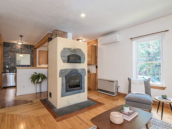 Thoughtfully designed & ideal for intergenerational living, this distinctive, light-filled home sits on an expansive yard w/ raised garden beds & fruit trees The 1st level is open to the upstairs yet provides privacy & ease for single-floor living. A masonry stove warms the entire home, or use Rinnai gas heat & minisplits. The first floor's open design includes a kitchen, half bath, living & dining area, office, & a bedroom area w/ a full bath. Off the dining area: a spacious screened porch perfect for relaxing or entertaining. Upstairs, a newer kitchen anchors an open living, dining, & kitchen area, plus 2 more bedrooms, a full bath, another half bath, & plenty of skylights. 3rd floor is flexible w/ a minisplit, good for office, meditation, crafts, or storage. Ceiling fans help move air throughout the home. The restored 2-story barn has generous storage & workshop areas. See attached for floor plans, improvements, heating systems info, & details about solar & tankless water heater.