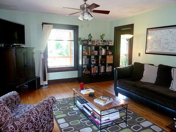 Two Story Emerson home is picture perfect! Covered front porch, foyer with open staircase, nine foot ceilings, gorgeous woodwork with columns and ornate moldings, gleaming hardwood floors, leaded glass windows and tons of natural light! Huge kitchen with tile floors, dishwasher, gas stove and updated fixtures! Two full baths with claw foot tub and new fixtures! Three bedrooms on second floor with great closet space. Beautiful backyard oasis with covered porch, stamped concrete patio, six foot privacy fence, organic gardens, peach tree and rare two car garage!