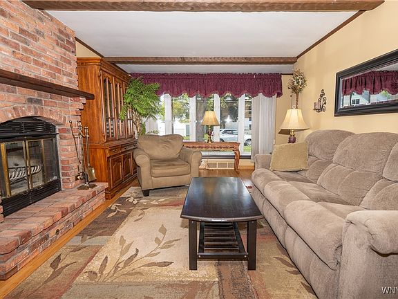 Welcome home to this lovely 3-bedroom, 1.5-bath ranch tucked away on a quiet, dead-end street in the Town of West Seneca and within the West Seneca School District. This beautifully maintained home offers the perfect blend of warmth, charm, and easy living. Step inside to a spacious living room filled with natural light from the oversized bay window, featuring a cozy wood-burning fireplace and gleaming hardwood floors in excellent condition. The eat-in kitchen is bright and inviting with a skylight, ample cabinet and counter space, and a built-in cooktop and oven. All three bedrooms are generously sized and feature brand-new carpeting. A well-kept full bathroom completes the main floor. Downstairs, you’ll find a very dry, refinished basement offering great additional living space with two bonus rooms and an updated half bath — ideal for a home office, gym, or rec room. Enjoy peaceful mornings and relaxing evenings in the Florida room, overlooking the deep, private backyard with no rear neighbors. The backyard is fully enclosed with privacy fencing, offering both security and seclusion. Outside, there’s also a covered front porch, a 2.5-car detached garage with electric and a wood-burning stove, a shed, and beautiful landscaping. Notable updates include a complete tear-off roof (2020), newer furnace, and freshly painted exterior (2025). With its abundance of closet space, low-maintenance design, and thoughtful updates, this home is truly move-in ready. Located close to thruways, shopping, parks, and schools, this property offers a lifestyle of ease and accessibility. Don’t miss your chance to make it yours — offers will be reviewed as received. Open House: Saturday, 10/11 from 11 AM – 1 PM.