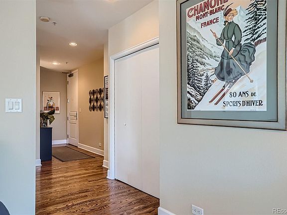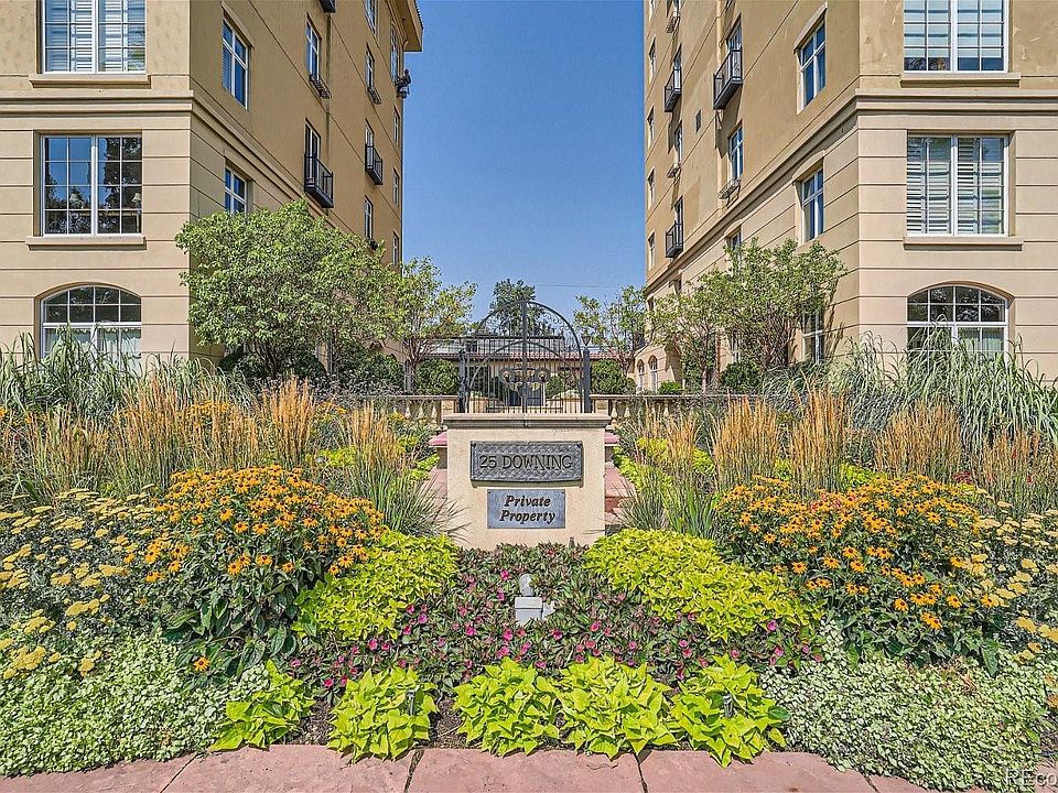 Welcome to this lovely 1 bed/1 bath unit on the second floor of the prestigious 25 Downing building. Flooded with natural light, boasting hardwood floors, this unit features open concept living. The kitchen opens to a cozy family room with a fireplace, and a sliding glass door extends the living space to the private back deck. The spacious primary bedroom includes an ensuite bath, complete with a laundry closet. Enjoy the convenience of a parking space and storage unit in the secure community parking garage. The building offers peace of mind with its security features and well-managed HOA, allowing for effortless lock-and-leave convenience. Additional amenities include a stunning professionally landscaped front courtyard with fountain, fitness center, underground community garage, and secure entrance. This incredible condo is conveniently located near Cherry Creek's fine dining and retail shopping, Wash Park, and provides easy access to Downtown Denver.