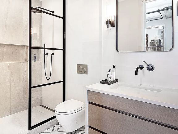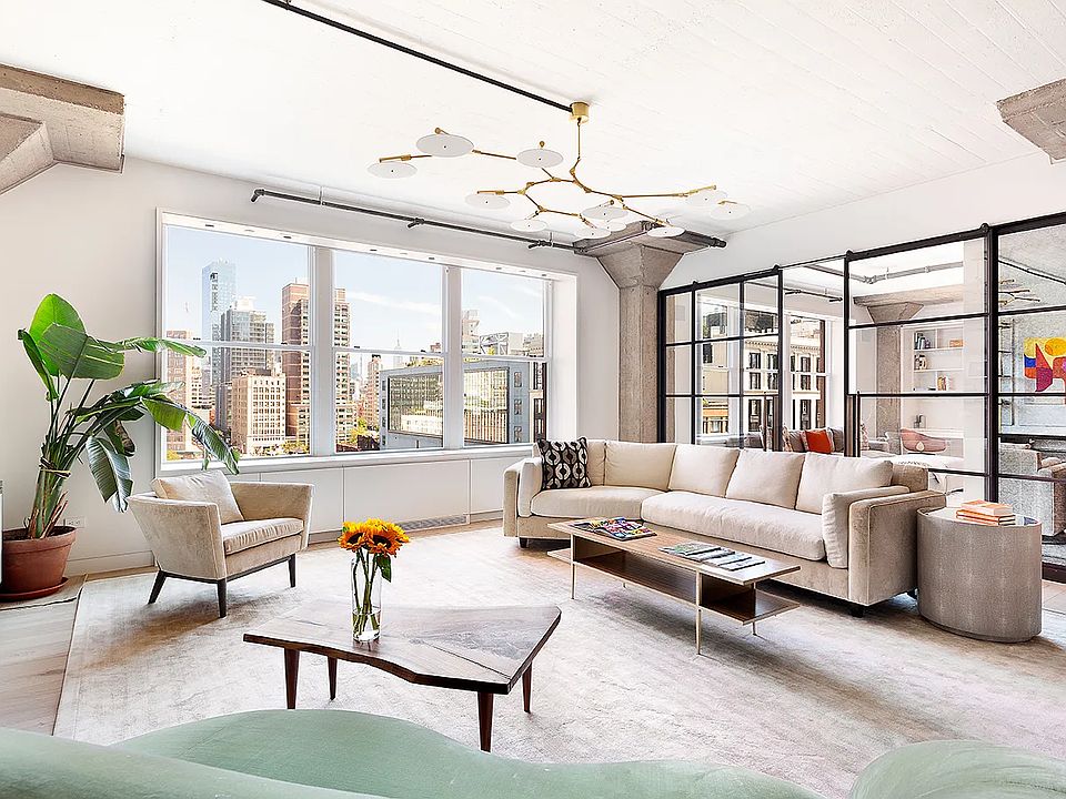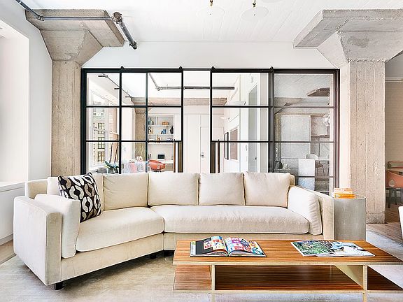 Occupying 3,000 square feet on the ninth floor in the exclusive Atalanta, this ultra-chic 4 bedroom, 3.5 bathroom loft is a true masterpiece in architecture and design to rival the best in Manhattan living. Built by award-winning architecture and interior design firm DHD Architecture, this high-spec residence has been crafted to the highest international standards with state-of-the-art technology, encapsulating the essence of luxury living in what many consider to be the prime jewel block in TriBeCa. Careful consideration to family living was a central focal point of this recently gut-renovated home, resulting in a seamless separation of space. Private living rooms run down the south side of the apartment, while public spaces are on the north end, separated by a gracious entrance gallery. Rare in stature and scale, living areas showcase exposed concrete ceilings and sandblasted concrete columns that create an authentic industrial feel. This, in combination with incredible contemporary interior design and bespoke finishes, produce an unforgettable residence. Leading into the open concept entertaining spaces, you'll find an impressive chef's kitchen replete with top-of-the-line appliances including Miele induction cooktop, two Miele steam ovens, Subzero refrigerator, and Miele dishwasher. Framed beneath a spectacular Lindsey Adelman ceiling light sits a large Italian quartzite kitchen countertop, doubling as an informal breakfast bar that accommodates four. Porcelain backsplashes, Dornbracht tapware, and custom-built oak kitchen cabinetry complete this elegant space. A grand dining room features built-in banquette seating and is anchored by a fully-equipped wet bar on one end and a concealed Subzero refrigerator with 102-bottle capacity on the other. Flooded by northern light, the gracious 18-foot by 21-foot living room is framed by three oversized windows with rare protected views of the Empire State Building, while custom made built-in McNutt + Dennen bookshelves accent this generous entertaining room. Custom sliding glass doors from Face Design & Fabrication feature blackened steel frames, bronze panels, and custom walnut handles lead you into a large den with home office. This clever design keep the interiors light while providing flexibility in how the space is divided and used. The den can easily be converted into a third bedroom, and includes its own fully appointed bathroom. The palatial main bedroom enjoys spectacular southern views overlooking downtown Manhattan and the One World Trade Center. A stylish 5-fixture ensuite bathroom includes heated floors, two marbled vanities with Kohler tapware, deep soaking tub, luxurious shower, and completely custom-built walk-in closet. No detail is left unturned at 25 North Moore. The home features built-in surround sound Sonos system, Lutron lighting throughout, French cut white oak flooring (combination of live sawn and wire brushed), LG central A/C system, remote roller blinds, dedicated laundry room with full-size vented LG washer/dryer, utility room, and full-size Subzero wine refrigerator in basement that accommodates an additional 146 bottles. The apartment also includes a private storage room. Monthly taxes reflect primary residence. Built in 1924 as a refrigerated warehouse, Atalanta is a 17 story condominium building home to 63 exclusive residences. The building features a full-time doorman and a stunning roof deck with sweeping city and river views. Pets are welcome.