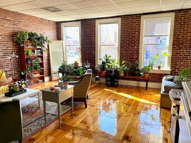 This stunning renovated, large, open floor style is located on the 2nd floor of the Historical Grandonico Building, 25 N. Pleasant St., Amherst, MA, center of town (Next to Antonio's). Great for 1 or 2 people. This apartment features exposed brick walls, a wall of large windows, gleaming hardwood floors, open floor plan for living and bedroom area, pantry, granite eat-in kitchen, renovated full bath, all heated and cooled with mini-splits.