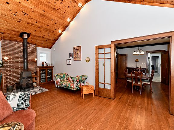 Large deckCharming original built-insSpacious family roomCathedral ceilingsCustom tongue-and-groove ceilingSilestone quartz countertopsCozy wood-burning stove