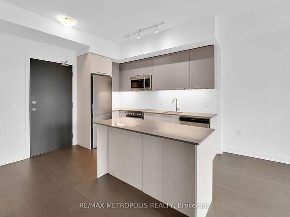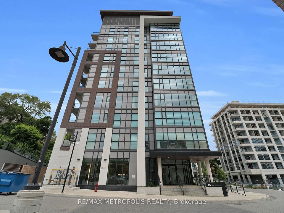 Welcome to urban living at its finest in this stunning 1+1 bedroom condo at the sought-after 25 Neighbourhood Lane. This beautifully maintained unit features soaring 10-foot ceilings and an open-concept layout flooded with natural light, offering both style and comfort. The sleek modern kitchen is a standout, complete with stainless steel appliances, stone countertops, and a contemporary tile backsplash perfect for everyday living or entertaining. The spacious primary bedroom includes a walk-in closet, while the versatile den is ideal for a home office, reading nook, or guest space. Elegant laminate floors run throughout, enhancing the units warm and sophisticated feel. Enjoy access to top-tier building amenities including a fully-equipped gym, stylish party room, guest suites, and a landscaped outdoor BBQ area for relaxed summer evenings. Just steps from your door, you'll find a pharmacy, doctor, dentist, and convenience store, as well as easy access to TTC, shopping, dining, parks, and scenic walking trails. Whether you're a first-time buyer, busy professional, or savvy investor, this immaculate condo offers a rare blend of comfort, convenience, and lifestyle. Don't miss your chance to call this vibrant, well-connected community home.