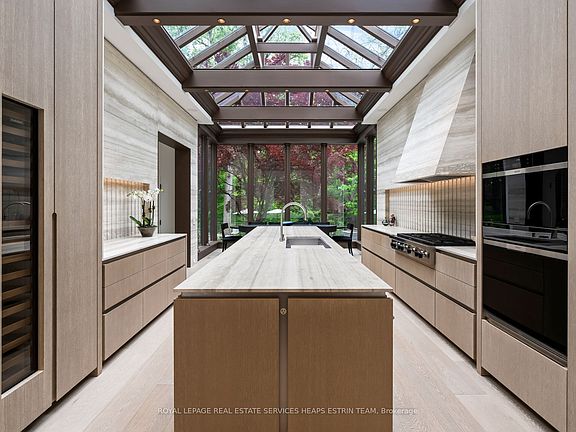 Leave the city in the city. This serene estate invites you to do just that. Nestled behind the gates on one of Toronto's most exclusive streets, 25 North Drive is a rare architectural offering: a quiet, confident statement where design, art, and nature coexist in harmony. Thoughtfully reimagined through an internationally acclaimed renovation by Reflect Architecture and featured in leading architectural and design publications. Executed with masterful precision, the transformation celebrates both innovation and restraint, elevating everyday living to an art form. At the heart of the home lies a truly exceptional Obumex kitchen, handcrafted in Belgium. This kitchen thoughtfully integrates artful sensibilities, natural inspirations and family-oriented functionality. With minimalist lines and bespoke finishes, this space is more than a kitchen, it is a sculpture in daily use. Expansive windows frame ravine views and infuse the interiors with natural light. The main floor is tailored for elegant living, featuring sun-filled rooms, with an inviting family room, and that stunning kitchen which opens seamlessly to the lush backyard. The upper levels include an expansive primary wing with dual dressing rooms, a spa-inspired ensuite, and treetop views. Four additional bedrooms offer ensuite baths, providing privacy and independence for family or guests. The lower level features a gym, recreation room, kitchenette, and full bath, making it ideal for wellness and entertaining. Manicured gardens, mature trees, a ravine backdrop, a sparkling pool, and a private tennis court elevate the everyday. With architectural pedigree, natural beauty, and a legacy of care, 25 North Drive is more than a home. It is a lifestyle defined by privacy, presence, and permanence. Some homes are built for living, this one was crafted for a life well lived.