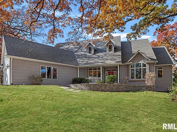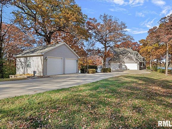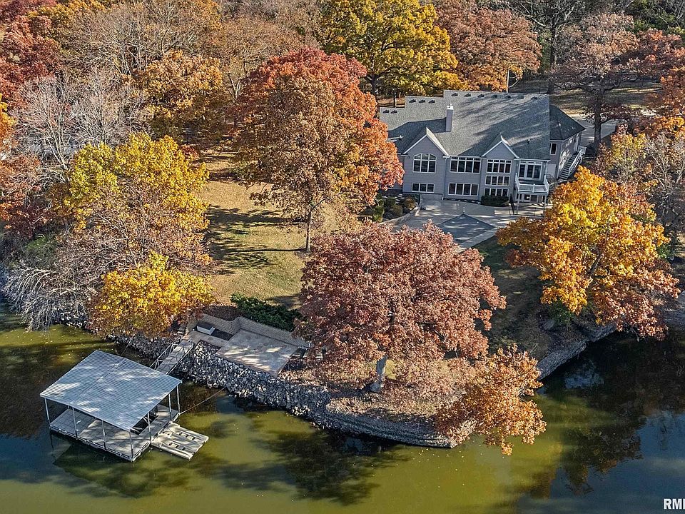 Nestled in a gorgeous Lake Springfield cove this incredible estate showcases high end craftsmanship thoughtfully designed w/comfort & elegance top of mind. You're welcomed by a wall of windows & vaulted living space where warm hardwoods, modern fixtures & a stone fireplace frame captivating views of the lake. From there you'll find a true chef’s kitchen loaded w/fabulous perks like a Viking 48' fridge, custom cabinetry & a huge island w/bar seating. Downstairs, panoramic views continue through an impressive lower level where you’ll entertain, relax & spread out effortlessly across the large family & rec space. Nearby a custom wet bar is complete w/cabinetry, counterspace, wine storage & mini fridge while BR's 2-4 include a deluxe guest’s suite w/en suite bath access. LL bonus rm & additional full bath are like cherries on top; not to mention walk out access to your very own poolside paradise. Sitting against a picturesque backdrop, the meticulously maintained inground saltwater pool features an updated liner, gas heater, electric cover & salt cell new in 2023 while nearby patio is hot tub ready & 220v equipped. Gently sloping greenspace leads to over 400ft of shoreline while an Ozark covered boat slip & 2 EZ-Dock jet ski docks await in calm waters. Framed by mature trees for both shade & privacy while recent additions like irrigation pump & new Trex decking this year keep maintenance minimal. Privacy, luxury & location are unmatched in this premier Lake Springfield home!