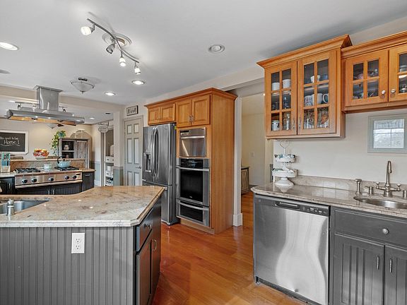 Short walk to town and close to Lake Winnipesaukee. Large country home with many upgrades and renovations through the years. Step through the front door and you are greeted by a bright entry way pouring in with sunlight and beautiful wood floors. The desirable floor plan offers main level bedrooms and large bathroom w/ heated floors and tiled shower. There is a spacious and open concept living room that flows to the formal dining room and recently updated eat-in kitchen with granite countertops, stainless steel appliances, steam oven, and gas range. Upstairs there are separate guest quarters with private entrance featuring 2 additional bedrooms, full bathroom, large kitchen area and living room, perfect for privacy for extend family, friends or guests. Past the upstairs kitchen there is additional bonus room, suitable for an office or additional living space. The home has two separate electric meters and separate heating zone on each level in addition to the two story barn with loft for additional storage. Each level also has a 3 season enclosed porch for indoor/outdoor enjoyment. Roof was replaced in 2022. Listing agent is related to the seller. Seller holds a NH real estate license. Motivated sellers!