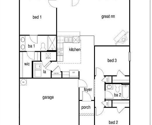 This beautiful single-story home features 3 spacious bedrooms, 2 modern bathrooms, and a convenient 2-car garage. Perfect for families or those seeking comfortable, one-level living, this home offers a harmonious blend of style, functionality, and space. In addition to 2 spacious guest bedrooms, the grand primary suite includes beautiful natural light, a double vanity, and a huge walk-in closet. A large great room offers space for relaxation and dining and flows seamlessly into the kitchen, creating the perfect space for entertaining or family gatherings. With easy access just off the kitchen, an enclosed laundry room offers convenience and ease to your day-to-day life. Equipped with energy-efficient appliances and insulation to help save on utilities, this home offers the perfect combination of comfort and convenience.