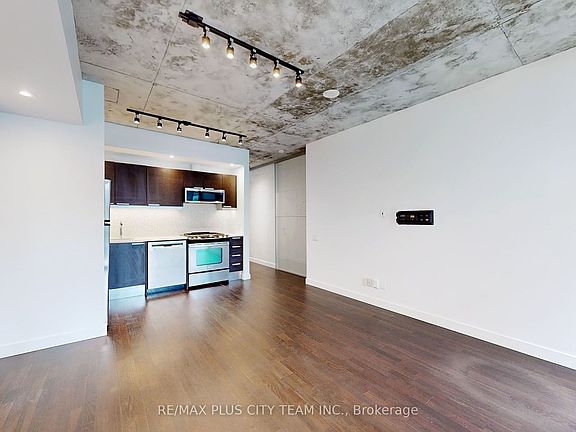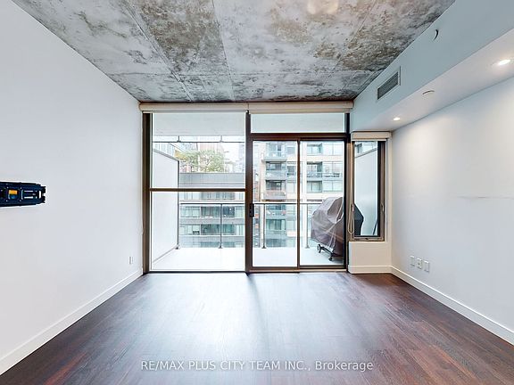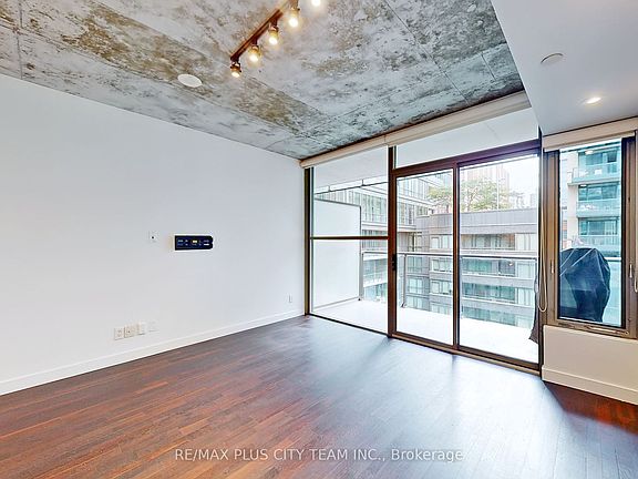 Discover the perfect blend of industrial charm and modern elegance in this beautifully appointed 1-bedroom suite at Glas Condos. Boasting 9-foot exposed concrete ceilings, floor-to-ceiling windows, and warm hardwood flooring, this bright and airy space offers a sophisticated downtown living experience. The sleek Italian-designed kitchen features Caesarstone countertops, soft-close drawers, a glass tile backsplash, and premium stainless steel appliances. The spa-inspired bathroom is finished with Corian counters and contemporary fixtures. Enjoy the outdoors on your private south-facing balcony, complete with a built-in gas line for a barbecue, perfect for entertaining or relaxing in the heart of the city. Residents benefit from the added security and convenience of part-time concierge service, available from 7 p.m. to 2 a.m. on Thursdays through Saturdays. Ideally located, this condo is just steps from the Fashion District, Entertainment District, fine dining, shops, nightlife, and excellent TTC access. A perfect urban retreat for professionals or anyone seeking stylish city living in one of Toronto's most vibrant neighbourhoods. *Please note that the photos are from when the unit was vacant.