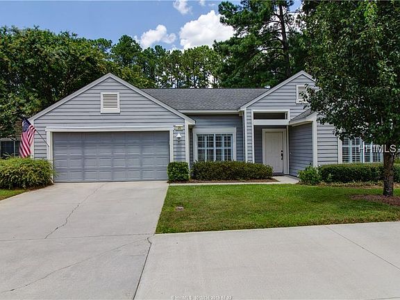 Fabulous villa in Sun City Hilton Head. Away from hustle and bustle yet walk to Town Square, the SCHH hub w pools, fitness center, theatre, and activity center. You can also walk to walking path loop. Great room adjoins Carolina Room overlooking lagoon and wooded preserve; eat-in kitchen w stainless, granite countertops, gas range, pantry; den; primary bedroom suite w walk-in closet, extended shower; split floor plan w guest bedroom and full bath in a separate area of villa offers guest privacy. 2 car garage w washer, dryer and laundry tub. Villa makes a great vacation home also, turnkey operation! Low POA $567 per month for all the extras.