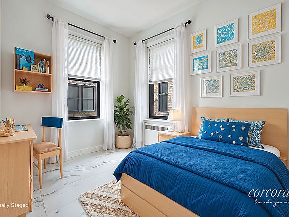 As you enter, you're welcomed by a generously sized and versatile foyer which can easily double as a dining area or dedicated workspace. It flows into a spacious living room that comfortably accommodates both lounging and dining. The functional galley kitchen is equipped with new appliances and along with windowed full bath which adds everyday convenience. The oversized primary bedroom offers a peaceful retreat with generous closet space, while the bright, windowed bonus room works perfectly as a home office, nursery, or guest space. Prewar details, high ceilings, hardwood floors, and ample storage complete the space.