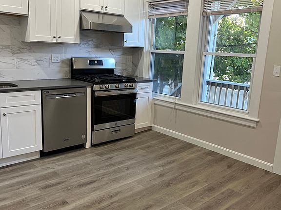 Beautiful 2 bedroom/1 bath apartment on 1st floor unit in multi-family house in Belmont on the Cambridge/Watertown line for Sept 1st. Please include in your inquiry where you live now, if you are a working professional or student and if you have pets! Super location near Fresh Pond. BRAND NEW bathroom and new kitchen appliances, full dining room in addition to living room, hardwood floors throughout and extra space in the basement for storage. Small private deck off of the kitchen and common yard space. Dedicated (not shared) laundry in basement (free, no coins, etc). 2-3 off street parking spaces included. NO SMOKING and no pets please! First month, one month security and a one month broker fee required at lease signing. 10 min bus ride to Harvard square on Bus #73. Owner pays for water, tenant responsible for gas (cooking), electric and oil heat