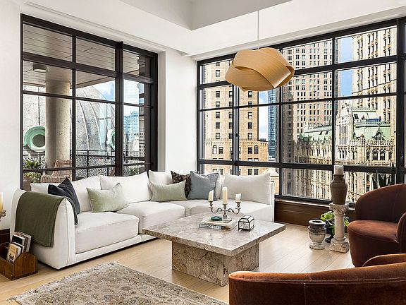 Residents of Park Row enjoy access to the elegantly appointed Park Row Club overlooking City Hall Park, with amenities including a library with fireplace, dining room, golf simulator, billiards room, 65’ swimming pool, fitness center with yoga and meditation studio, spa treatment room, playroom suite, and expansive Garden and Dining Terrace with outdoor living and dining spaces. Parking is available for purchase with a discreet Theatre Alley entrance.