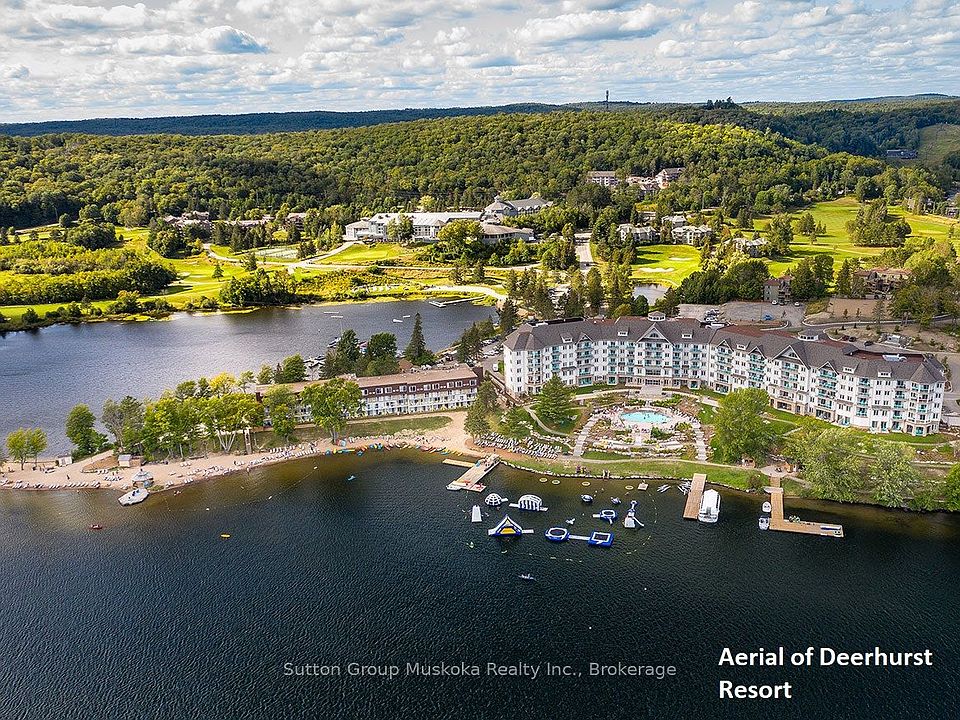 Immaculate two-bedroom condominium located in the Lakeside complex at Muskoka's premier resort - Deerhurst! This large two-bedroom unit with almost 1100 sq. ft. of living space offers an open concept living, dining and kitchen area with two sliding doors providing access to your private balcony. In the living room you will find a natural gas fireplace with a large flat screen TV above, the kitchen offers a center island, stainless steel appliances, plenty of cabinets for storage and loads of counter space. The master bedroom features a king-sized bed, large picture window, wall mounted TV, two closets plus a custom ensuite with soaker tub, glassed walk-in shower and large vanity. The second bedroom offers plenty of room and currently includes a double bed plus a bunk bed, the bunk bed could be removed to allow for a larger bed. This unit is located steps away from the pool and beach on Peninsula Lake. Peninsula Lake is part of a chain of lakes offers over 40 miles of boating, you can boat directly into Downtown Huntsville, stroll Main Street, and enjoy the many restaurants and shops. Deerhurst offers something for everyone in the family - the famous 18-hole Deerhurst Highlands course is perfect for the golfer in the family, beach, pools, tennis, disc golf, trails, gyms, restaurants and much more. Unit can be kept personal use or placed on the resort rental program with Deerhurst. HST does not apply to the sale. Enjoy the Deerhurst resort lifestyle in beautiful Muskoka! Live, vacation and invest in Canada!