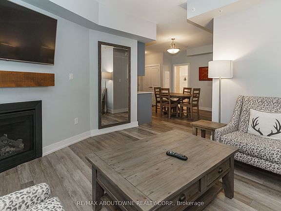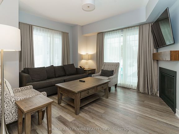 Stunning 2-Bedroom Milford Bay Model at Lakeside Lodge, Deerhurst Resort. This rare corner suite offers breathtaking eastern views of Peninsula Lake. Featuring two spacious bedrooms and two bathrooms, including a private 3-piece ensuite and a walk-in closet in the primary bedroom, this unit is designed for comfort and style. Enjoy a custom kitchen with granite countertops and stainless steel appliances, and relax in the cozy living room with a gas fireplace and walkout to a second balcony, perfect for soaking in the morning sun and panoramic lake views. The suite is fully furnished and part of Deerhurst's rental program, allowing you to enjoy it as a personal retreat or generate rental income when not in use. As an owner, you'll have access to an impressive array of resort amenities, including indoor and outdoor pools, a beach, tennis courts, scenic trails, hot tubs, skating rinks, cross-country skiing, and more. Hidden Valley Ski Resort and Deerhurst Golf Course are just steps away, with Huntsville and Algonquin Park only a short drive from your door.