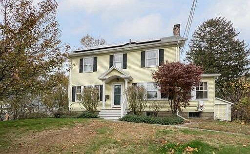 Here it is! The three bedroom colonial on a side road with gorgeous details you have been looking for! This home is nicely set back from the street with a large lot, stone wall and detached one car garage. There are beautiful hardwood floors and mouldings throughout, built ins and picture windows giving it that classic charm. Meticulously cared for with newer full house insulation, as well as roof, heating system and hot water all 10 years old or less. Enjoy central air and low utility bills with the leased solar panels. Retro kitchen in perfect condition. Located near EVERYTHING, train station, shopping, schools and route 128. Showings start Saturday November 18 11-12:30 and Sunday 1:30-3.