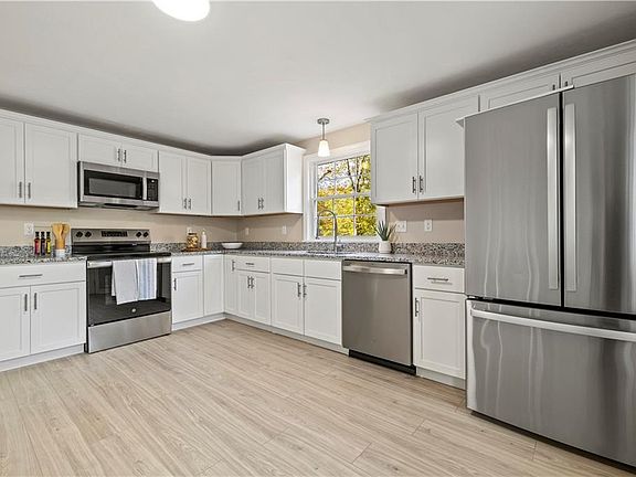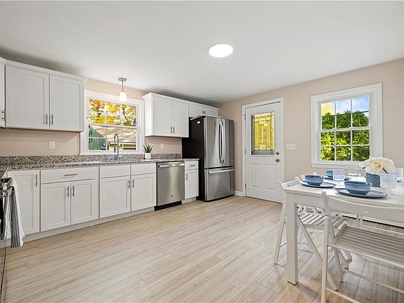 Newly renovated and beautifully updated, this amazing three-bedroom, generous in size, two-full-bath Cape is situated on approximately one-half acre of land. The home features a bright, modern kitchen with solid stone countertops, upgraded cabinets, and stainless steel appliances. The inviting family room is adorned with a bay window that fills the space with natural light and a charming fireplace that adds warmth and character. With a newly installed private sewer system and thoughtful updates throughout, this home is move-in ready and truly special. What more may one hope for? A generous yard perfect for family fun and entertaining, located within minutes to major highways and shopping, and any car lover’s dream with a three-car garage offering plenty of space for vehicles and storage. This home is meant for you! Welcome home!